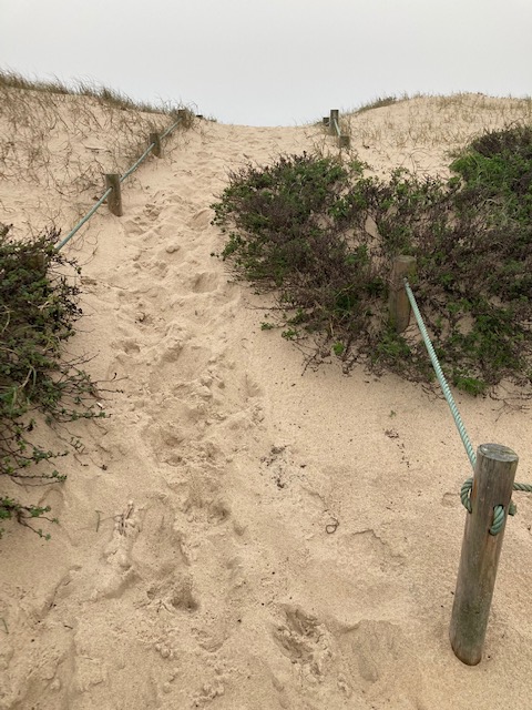Transito por el llamado «Sendero Litoral» del Camino Portugués por la Costa. No se miente al denominarlo así. Tampoco tiene mucho mérito. La mayor parte del recorrido se hace sobre pasarelas, elevadas en muchas ocasiones, para sortear la arena fina que no encuentra obstáculo que la detenga en su avance hacia el interior. Su intención es la de colonizar sin descanso nuevos territorios. Por cierto, todo muy bien cuidado y protegido hasta este momento.
