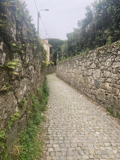 Entre los kilómetros 20 y 24 me muevo por la zona de Castelo Do Neiva, con callejuelas variadas y caminos empedrados. Es la hora de buscar donde comer sin dar la opción de elegir. Y la solución es Amorosa. O sea, la población se llama así y donde me relajo, hidrato y alimento es en Pastelería Amorosa. Elijo terraza, como casi siempre desde que se inició la pandemia. Ha llegado justo a tiempo esta parada. He recargado todo. El cuerpo, el espíritu y el móvil.
