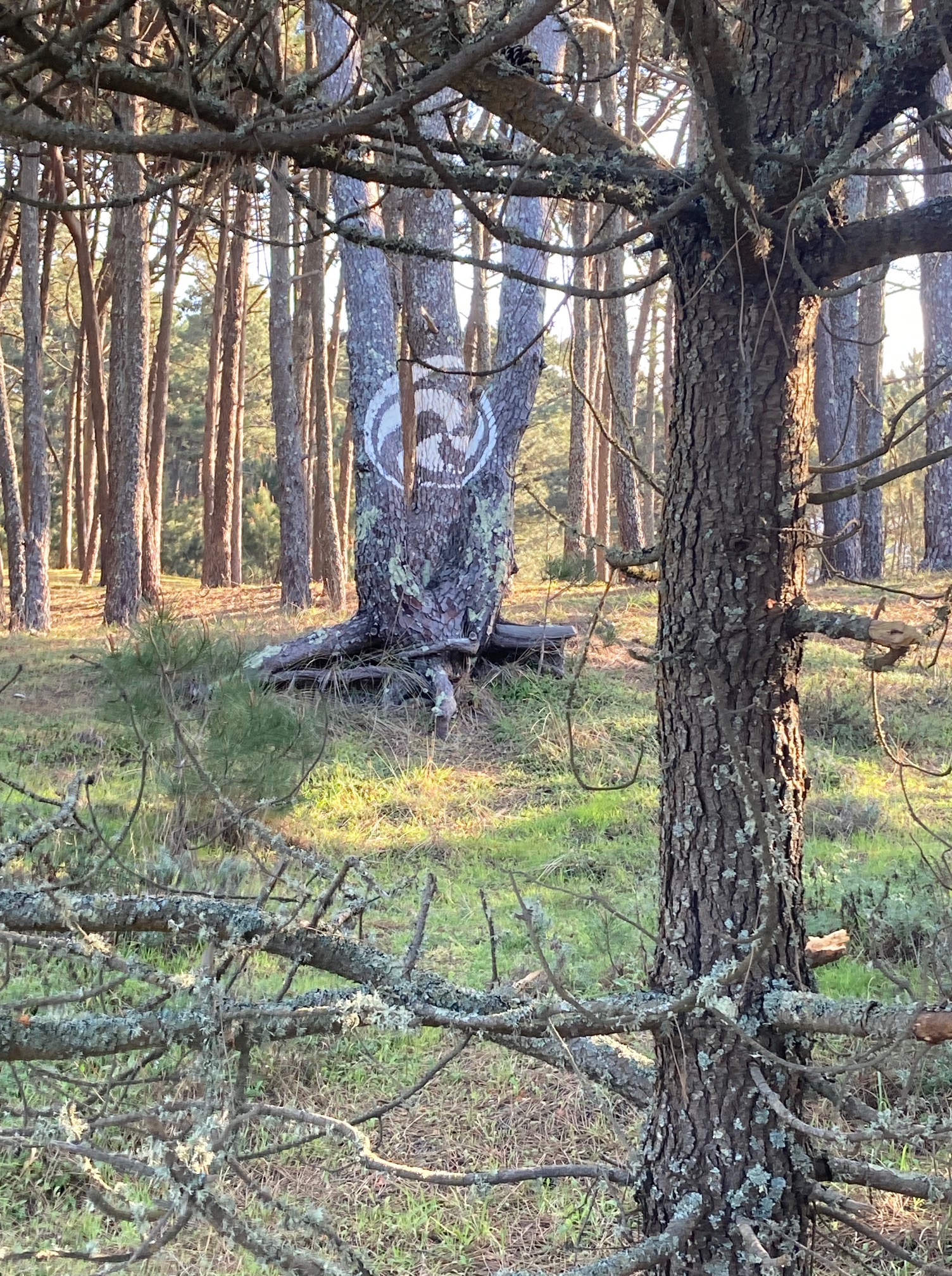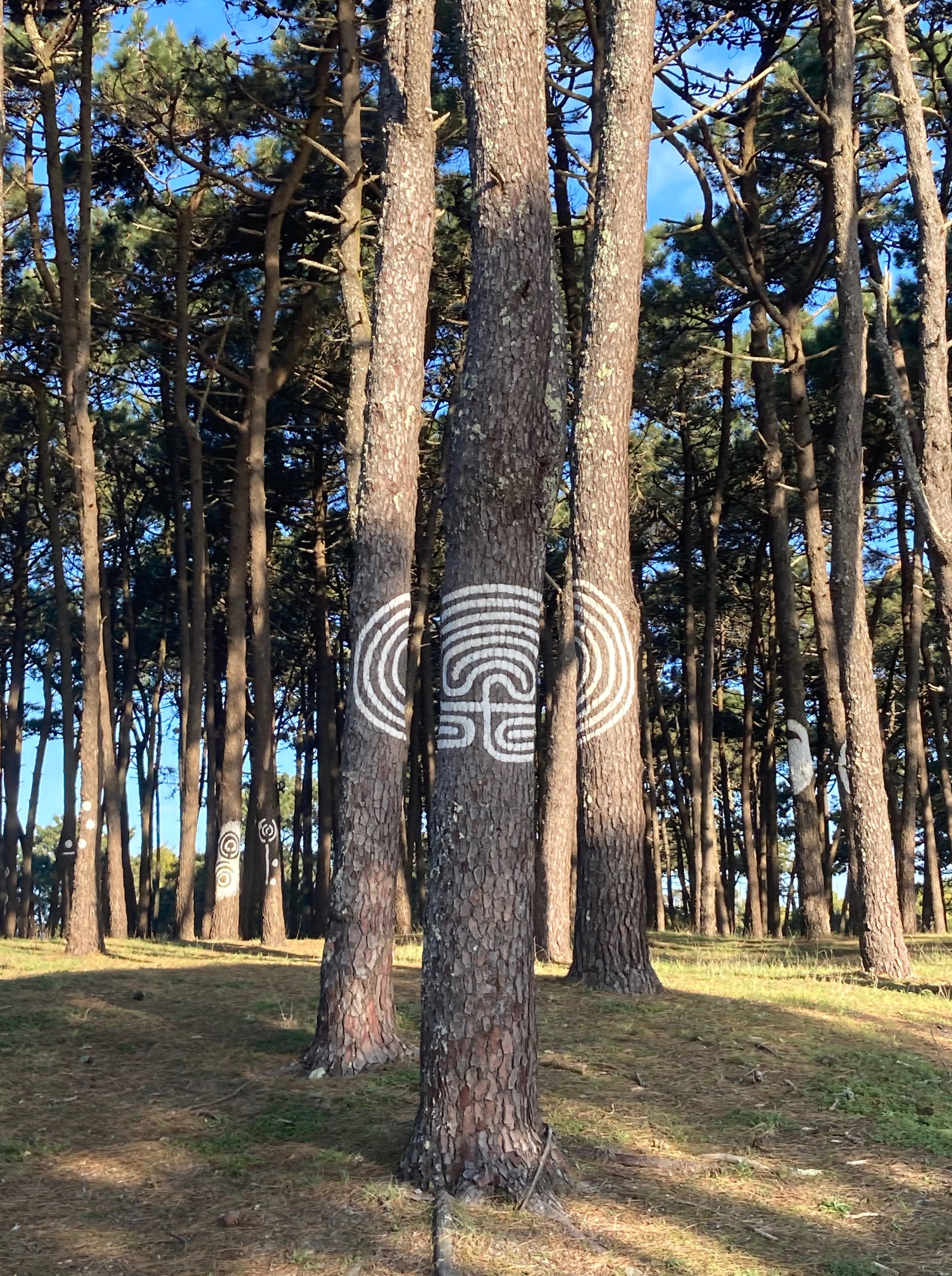 Y a los pocos metros de pisar tierra, caminando con la lentitud que me trasmite mi acompañante, me entrego en el Piñeral Castrexo. ¿Qué dónde lo sitúo? En el Monte O Puntal, Camposancos. Pinos por doquier, luces que llegan desde poniente intentando dominar las sombras y que interactúan con la simbología. Tengo que dejar de hablar con el solitario leonés. Busco lugares desde donde poder observar la obra de arte que se apodera del pensamiento. No llego a encontrar sonidos fantasmales mientras imagino la vida tras esa demostración en perspectiva. La vida o la muerte. La esencia de los pobladores de los Castros (pequeños asentamientos circulares y protegidos, situados en lugares estratégicos) tiene aun, para ciertos estudiosos, discrepancias en torno a su origen. Son propios de estas zonas, pero a mí me gusta imaginar que Uderzo y Goscini también visitaron este lugar antes de llenar estanterías con Astérix y Obelix… El concepto del lugar es crear un solo elemento entre la naturaleza y el arte, la arquitectura y la escultura y los sentidos y las imágenes. Resumiendo, es una tendencia reconocida como Land Art.