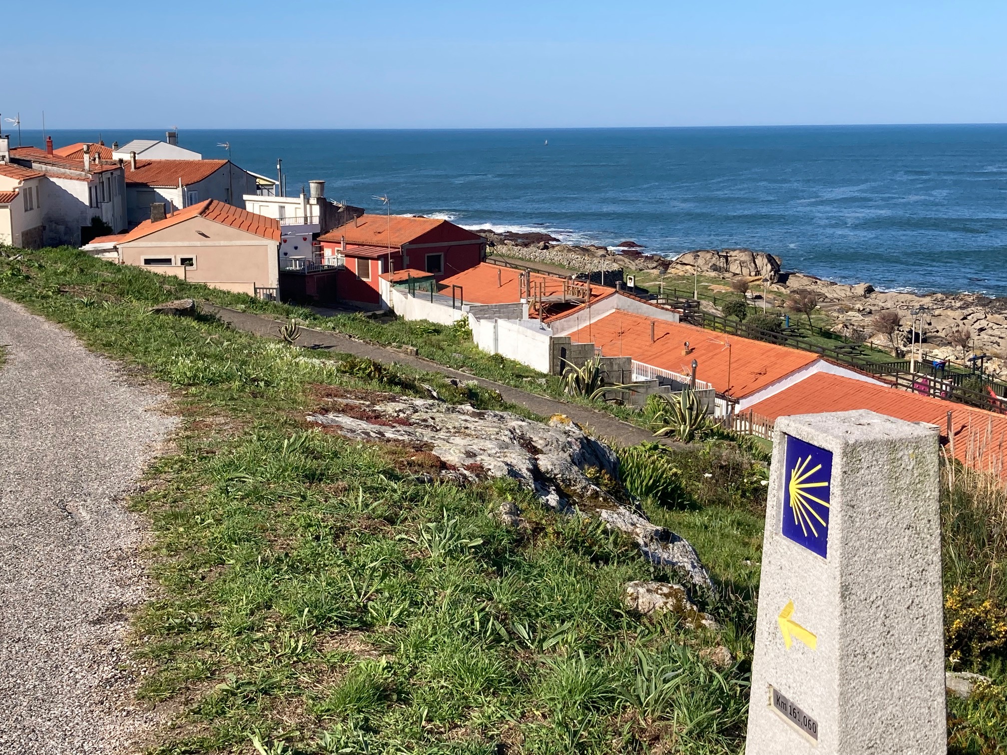 La guardia se deja ver mucho antes de estar a su altura. El puerto pesquero y los mástiles de algunos de sus barcos hacen de videoclip de bienvenida promocional al caminante. Es a la entrada a la población cuando el acompañante improvisado me comenta que va a tomar un café. Buen camino, le digo; Nos vemos en el camino, me responde muy seguro de ese hecho. Evidentemente, mi ritmo, muy superior al suyo, no le dará esa opción– pienso-.