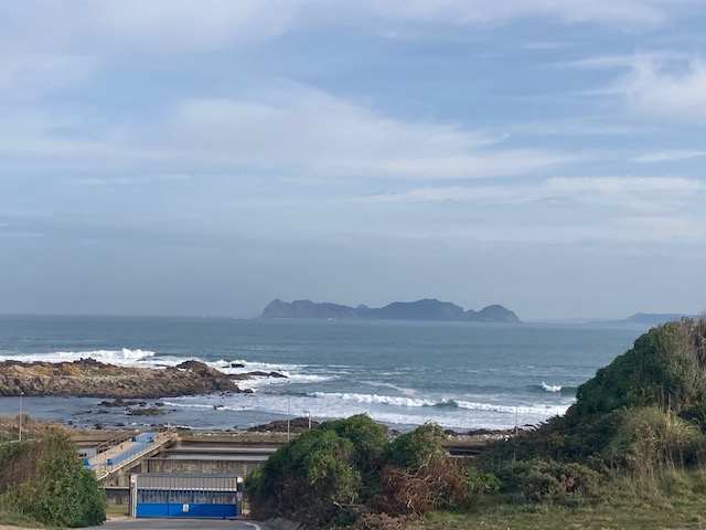 Y sigo rebobinando… Al llegar al Cabo Silleiro me topé con las Islas Polveiras, muy cercanas a la costa y, en la lejanía, veo unas islas que supuse eran las Cies (Islas de los dioses según Ptolomeo). Como el camino me llevaba en dirección a ellas no me he entretenido en observarlas detenidamente.