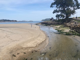 Dejo atrás la réplica de La pinta, atracada en el puerto de Bayona, y dirijo mis pasos hacia A Ramallosa por una bahía que se me antoja enorme. La visibilidad es kilométrica y ello me permite disfrutar del sentido visual. Muelle pesquero/deportivo, arenales extensos y de finura tal, que pareciera que sus granos se filtran hacia el interior de la tierra. Es difícil dejar por escrito lo que se observa, sobre todo en escaparates como este. Quisiera ser aire y mar, pero sobre todo, quisiera ser ave. Recorrer el mar que hay entre las Islas y el continente. No exagero; es un hermoso espectáculo.