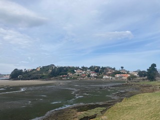 Dejo el hotel muy temprano. Creo que cada vez tengo más necesidad de caminar. Se está convirtiendo en adicción. Estas primeras horas del día tal vez estén siendo de las que más provecho estoy sacando desde que salí de Oporto. Quiero dejar atrás las tortuosas jornadas en las que me acompañaba la calima y la soledad, en el camino, era la norma. Espero ver a mas peregrinos a partir de ahora aunque creo que realmente me da igual. Solamente lo pienso por la información que me dio Xabi durante la charla que mantuvimos en el «porche» del hotel. «A partir de ahora verás bastante más peregrinos»