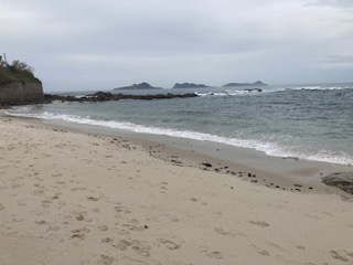 Debo abandonar temporalmente la línea de playa. Es apenas un paseo por entre algunas casas que no me impiden seguir disfrutando del mar. A lo lejos, sigo viendo esas islas dominantes…
