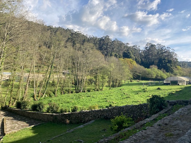 Sobre las nueve la llamada al Monasterio de Armenteira tiene premio. Una voz agradable femenina me confirma el alojamiento no sin antes desearme buen camino y…fuerza. Me augura una segunda parte de la ruta algo dura. Seguro que exagera. Con tranquilidad, ahora el rio Lagándara llena esos espacios de tiempo que no valoramos lo suficiente. Esos espacios en los que observamos bellezas ajenas, fuentes que no sólo dan agua al que parece errabundo, montes a los que no nos acercamos nunca, cielos llenos de un color que sabemos que no existe… Esos momentos son los que intento no olvidar.