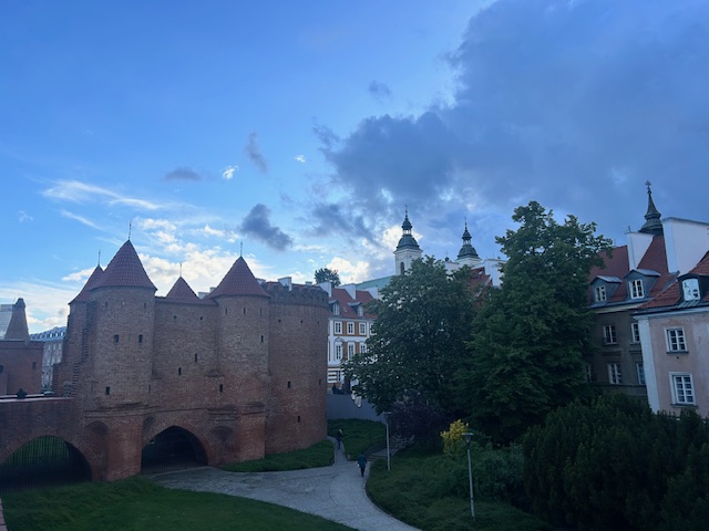 Dejada atrás la plaza, y el castillo, nos movemos por la muralla de la ciudad. Alguna compra de estilo vintage nos acerca un poco a lo antiguo. Deambulamos fácil y admiramos La Barbacana. Su función era y es, entre otras, la de servir de entrada y salida de la parte antigua a la nueva. Por supuesto, fue destruida casi en su totalidad. Usaron ladrillos de edificios destruidos para su reconstrucción. ¡Eso es ahorro!